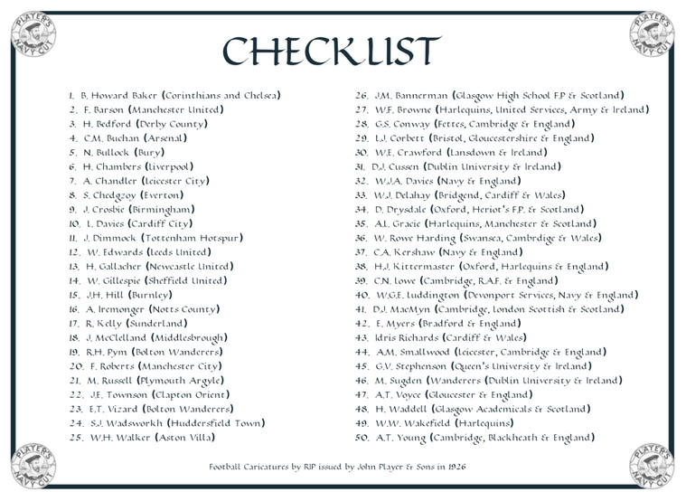 1925-26 John Player & Sons - Football Caricatures by 'RIP'