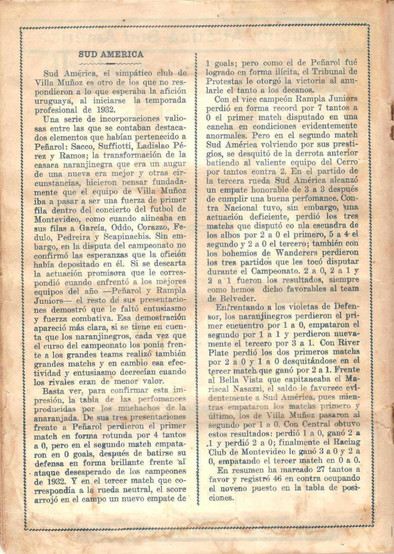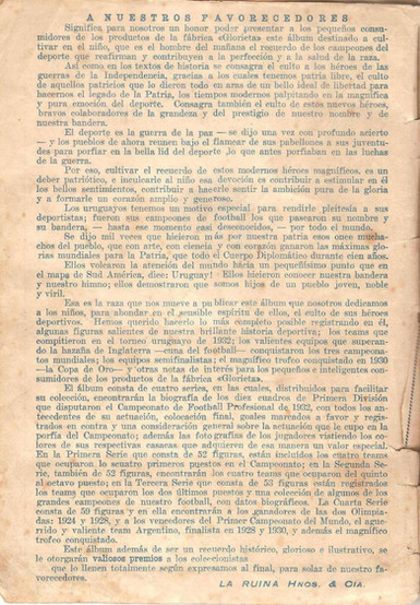 The 1932 Album El Deportista is one of the earliest sets and albums ever made for the Uruguayan market. The album is broken down into four series each of which has around 50 stickers. The stickers of this album cover the top teams in Uruguay along with the players of these clubs. There is also a section for Uruguayan star players, Uruguay's Olympics and World Cup Winning Squad and Argentina's 1930 World Cup Final squad.